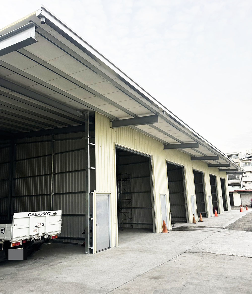 本工程為廠房鋼構與彩色浪板施作,施工前先依廠房使用需求進行結構規劃,確認鋼構骨架配置與屋頂斜度設計,使建築在強度與排水機能上都能達到穩定效果。施工過程中依照現場條件進行鋼構組裝與焊接固定,搭配彩色浪板安裝與邊角收邊處理,使整體屋頂結構兼具耐候性與施工品質,完成後不僅提升廠房空間使用效率,也讓整體外觀更加整齊俐落。