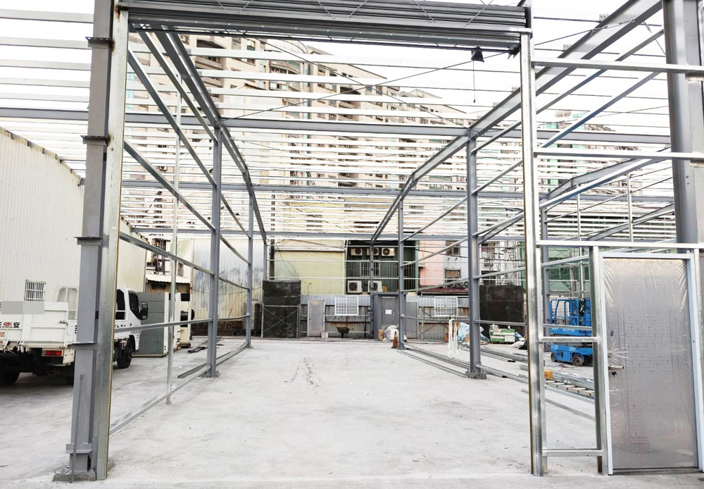 本案為鐵皮屋搭配鋼構骨架工程,依據建築空間與現場條件規劃鋼構支撐結構,確保整體屋頂具備良好承重能力與穩定度。施工時依序完成鋼骨組裝、焊接固定及屋面鋼板安裝,並針對邊緣與轉角進行細部收邊,使鐵皮屋在防水與抗風性能上更加可靠,同時也兼顧外觀整體感,打造兼具耐用與實用性的空間環境。
